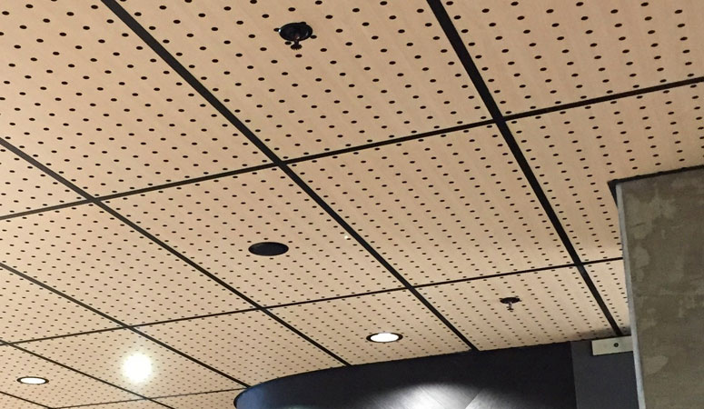 An acoustic ceiling, also known as a soundproof ceiling or a drop ceiling, is designed to improve the sound quality within a room by reducing noise and echoes. These ceilings are commonly used in spaces such as offices, classrooms, and theaters, where clear communication and minimal noise are important.