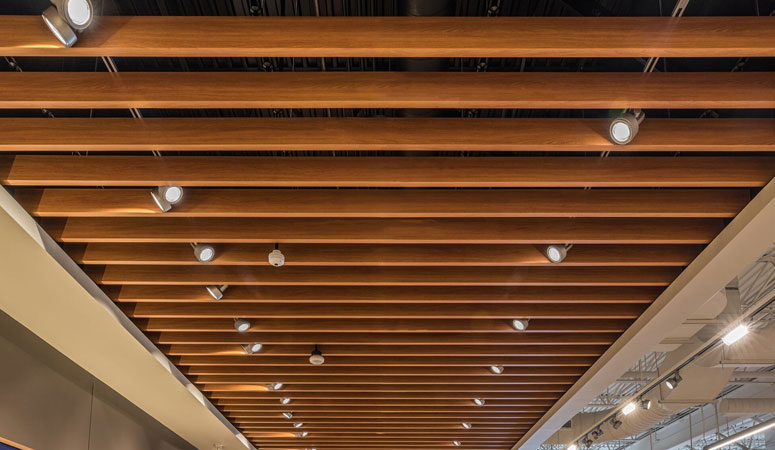 Baffle ceilings are a unique and modern ceiling design concept that involves the installation of baffles, or elongated panels, suspended vertically or horizontally from the ceiling. These baffles create a striking visual effect while also providing acoustic control and enhancing the overall aesthetics of a space.